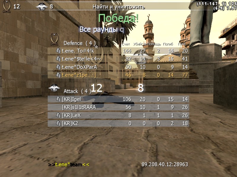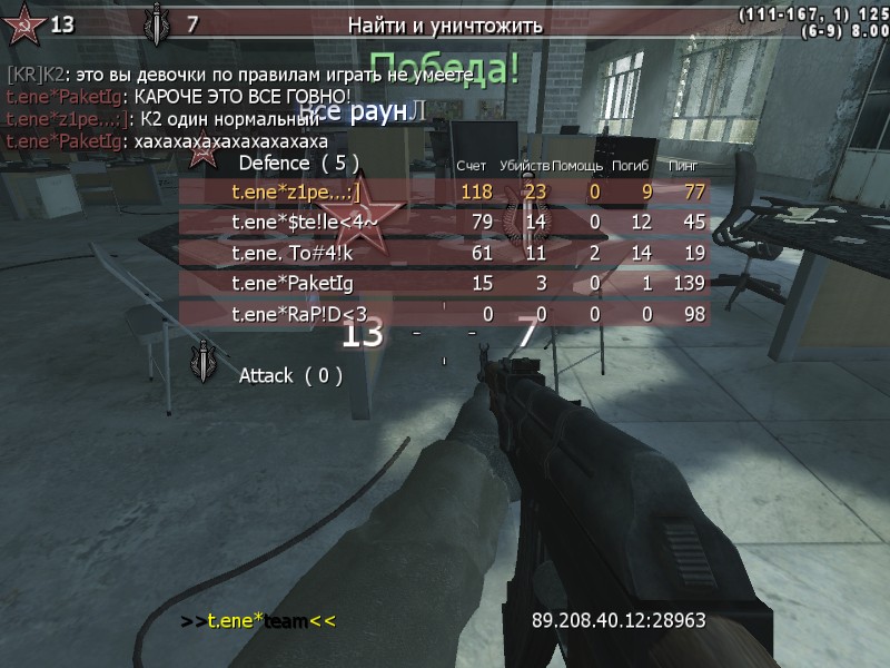 24 октября играли CW с кланом [KR] на Promod'e. Итог 21-15 в нашу пользу. В конце карты они ушли с сервера! Всем спасибо за игру!